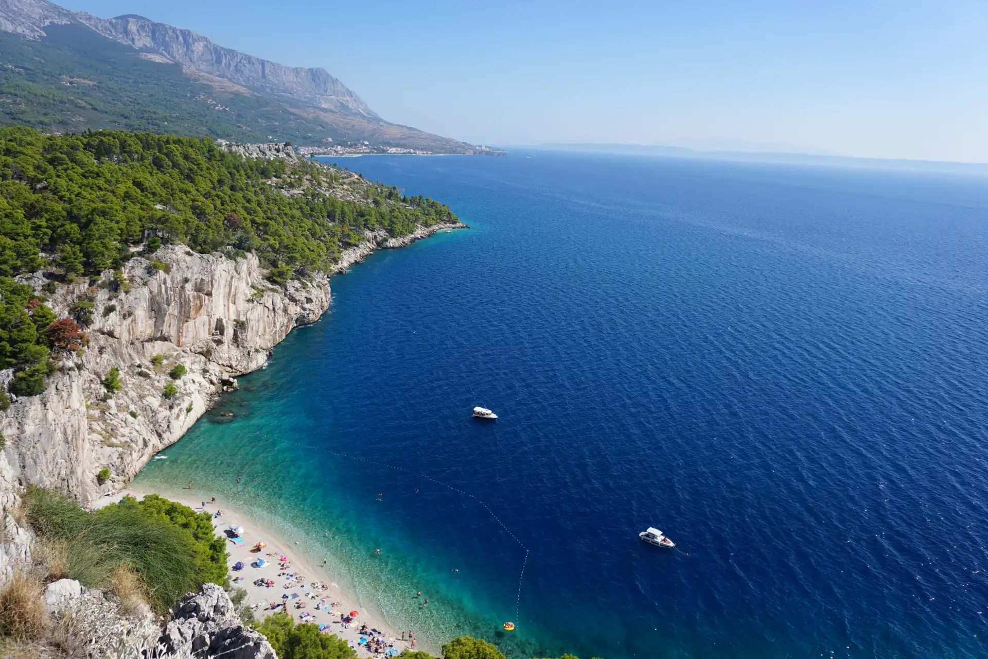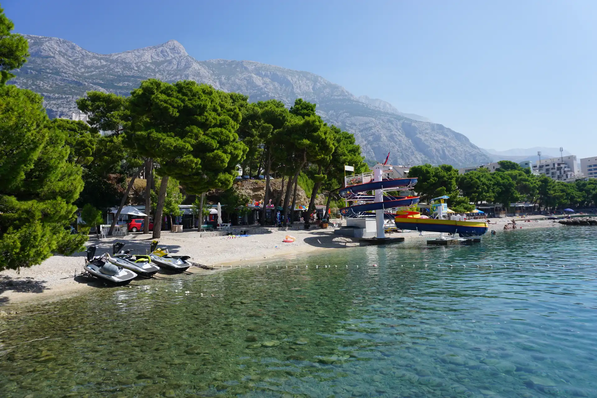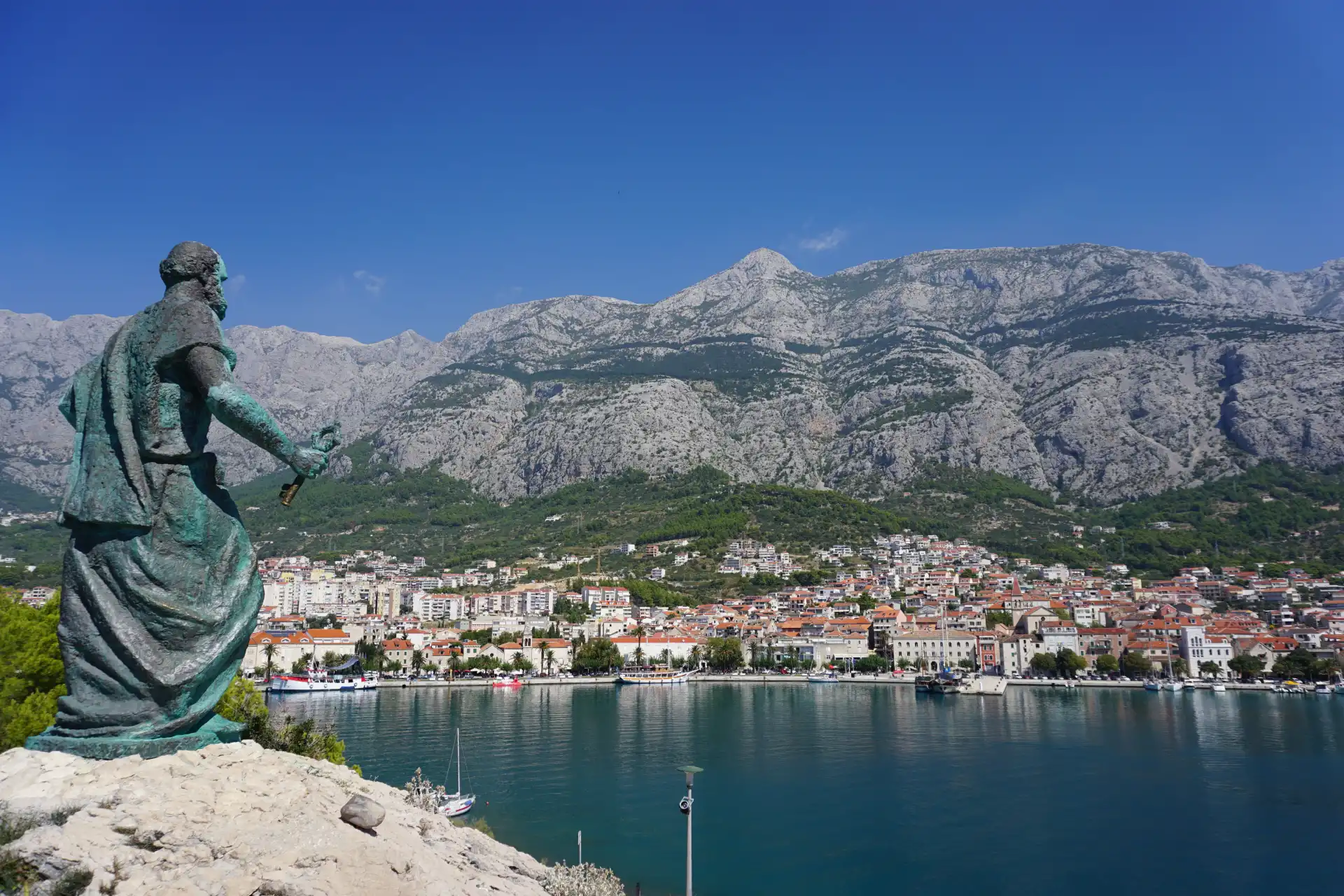 Makarska is a picturesque city on the central Dalmatian coast, beautifully positioned between the imposing massif of Mount Biokovo (1,762 m) and the crystal-clear waters of the Adriatic Sea. One of Croatia's most beloved summer destinations, Makarska enchants visitors with its lush pebble beaches, turquoise sea, a charming historic old town, and breathtaking mountain scenery.